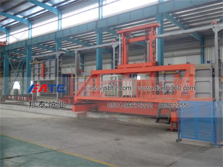 本套機組全纖維罩式淬火爐、回火爐對應(yīng)一臺淬火操作車,可滿足不同的生產(chǎn)工藝如:淬火、回火、退火、調(diào)質(zhì)等熱處理工藝,爐溫有多種規(guī)格,配套的快速淬火操作車可上下、前后四個方向移動,一臺操作車對應(yīng)一個爐子,工件熱處理完成后,操作車迅速進(jìn)入爐內(nèi)將工件從爐膛內(nèi)叉出,并快速落入水池或淬火液池內(nèi),整個過程在35秒內(nèi)完成,生產(chǎn)效率高,操作方便,從而保證了工件的淬火質(zhì)量。