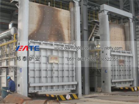2、燃氣臺車爐的爐體骨架由各種大中型型鋼現(xiàn)場組合焊接而成,外殼封板為彩鋼板,高鋁全纖維耐火甩絲毯模塊為爐襯,密封節(jié)能效果明顯。